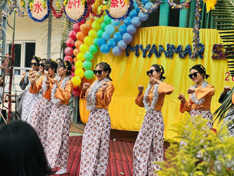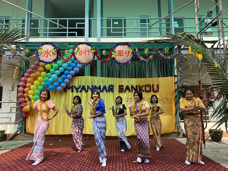 当社のミンガラドン校には賑やかな水かけ祭りイベントを行いました。 学生たちはプログラムのパフォーマンスを行い、プログラムはすべてミャンマーの各民族の民間舞踊で、おめでたい内容を中心にして、とてもにぎやかで、みんなで祝日を祝ってきました。 水かけ祭りは新たな始まりと希望を象徴しており、皆さんも素敵な新しい年を迎えられますように。